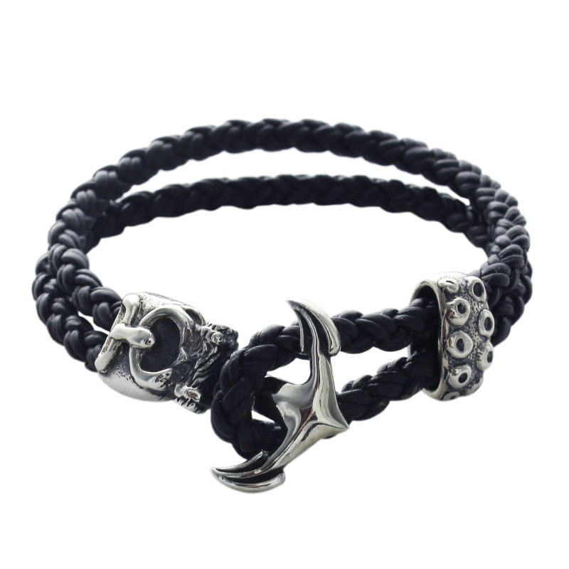 OCTO SKULL BRAIDED LEATHER BRACELET