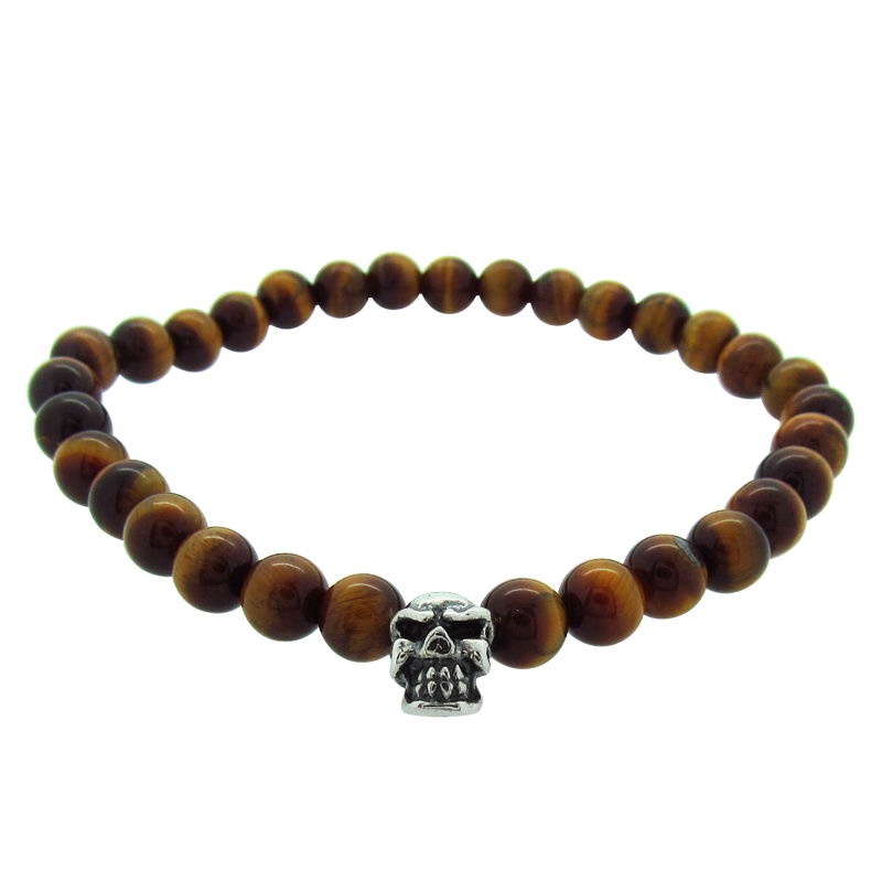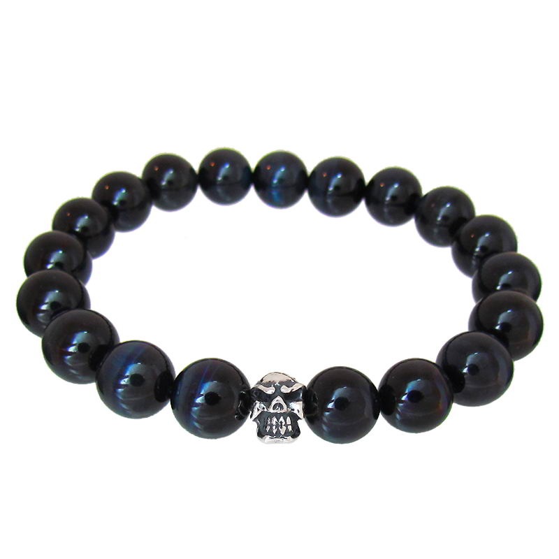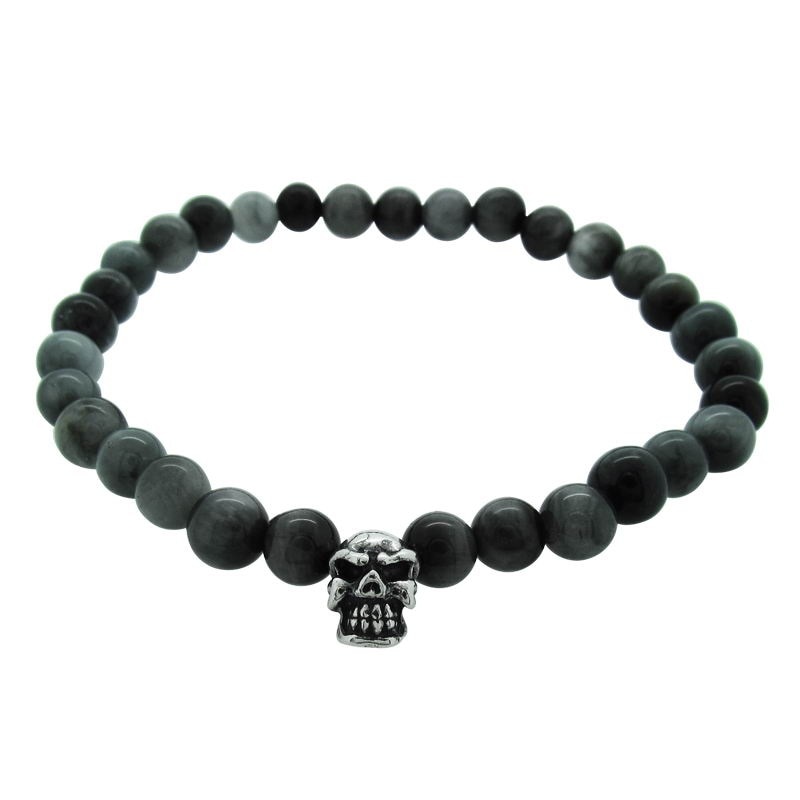STONE WITH LIL’G SKULL BEAD BRACELET (6mm EAGLE EYE)
