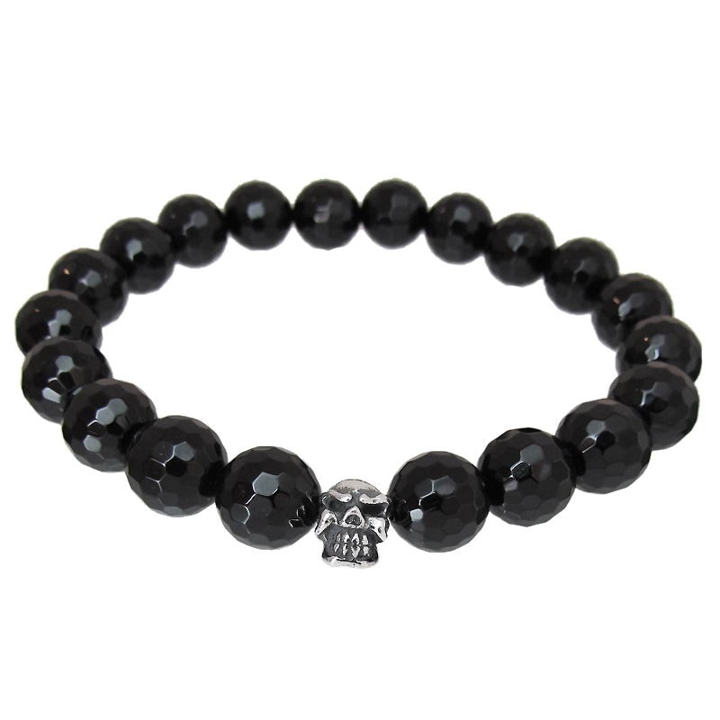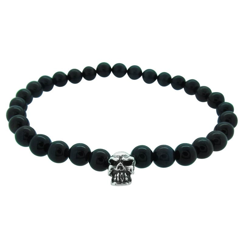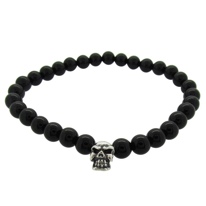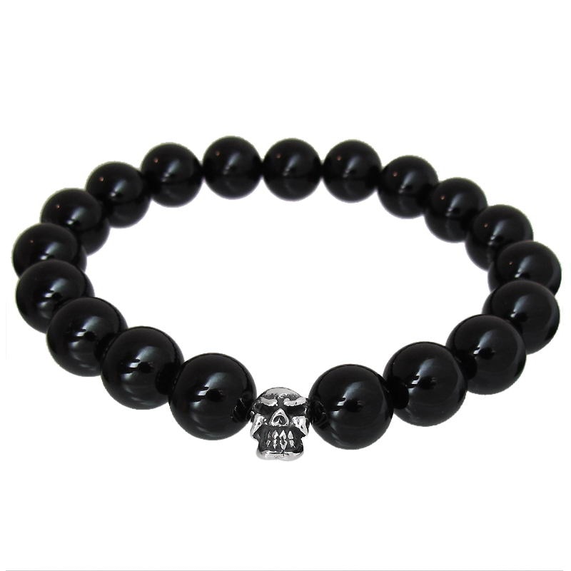 STONE WITH LIL’G SKULL BEAD BRACELET (10mm ONYX)