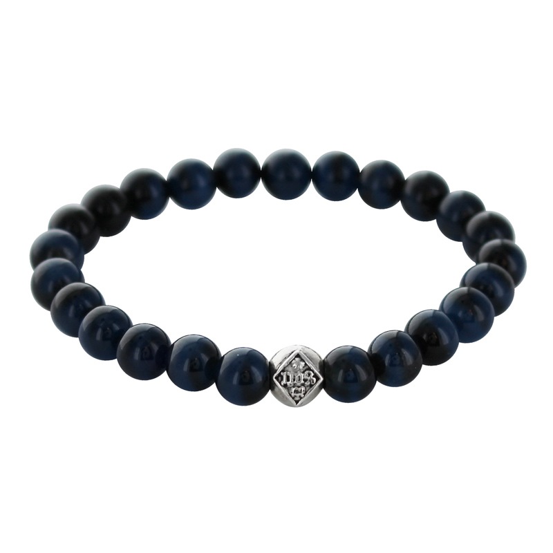 STONE WITH TW LOGO RING BRACELET (10mm BLUE TIGER EYE)