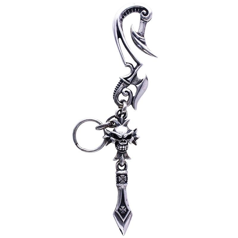 HOOK -CROSS SKULL WITH DAGGER 20TH PLAQUE .925 KEY CHAIN LTD.20
