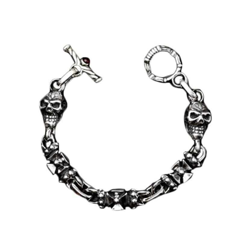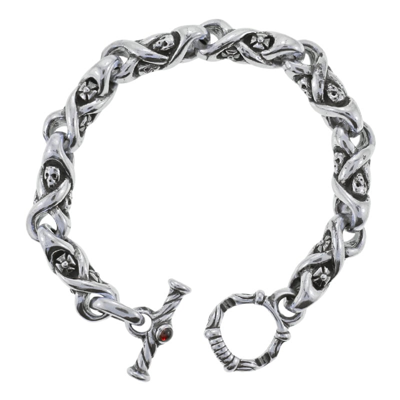 2 SKULL 2 CROSS LINK BRACELET WITH T-BAR CZ