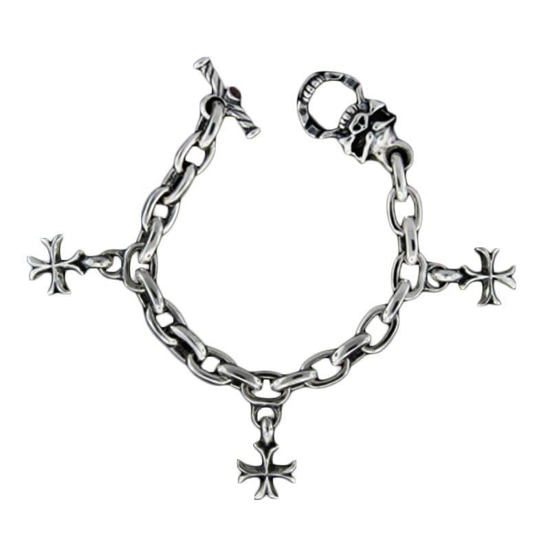 SMOOTH LINKS - 3 REBEL CROSSES WITH SPEED TOGGLE BRACELET WITH T-BAR CZ