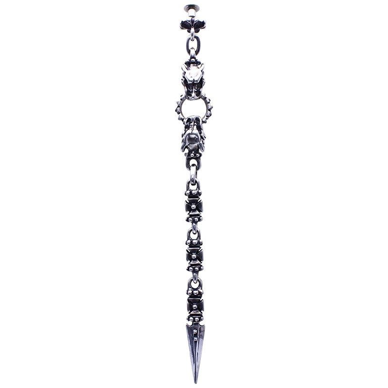 DRAGON TAIL SPRING CLIP WITH SKULL CROSS LINK KEY CHAIN