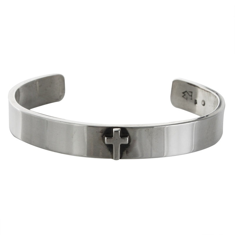 SILVER BANGLE 10mm WITH 1 SILVER TW SMALL CROSS