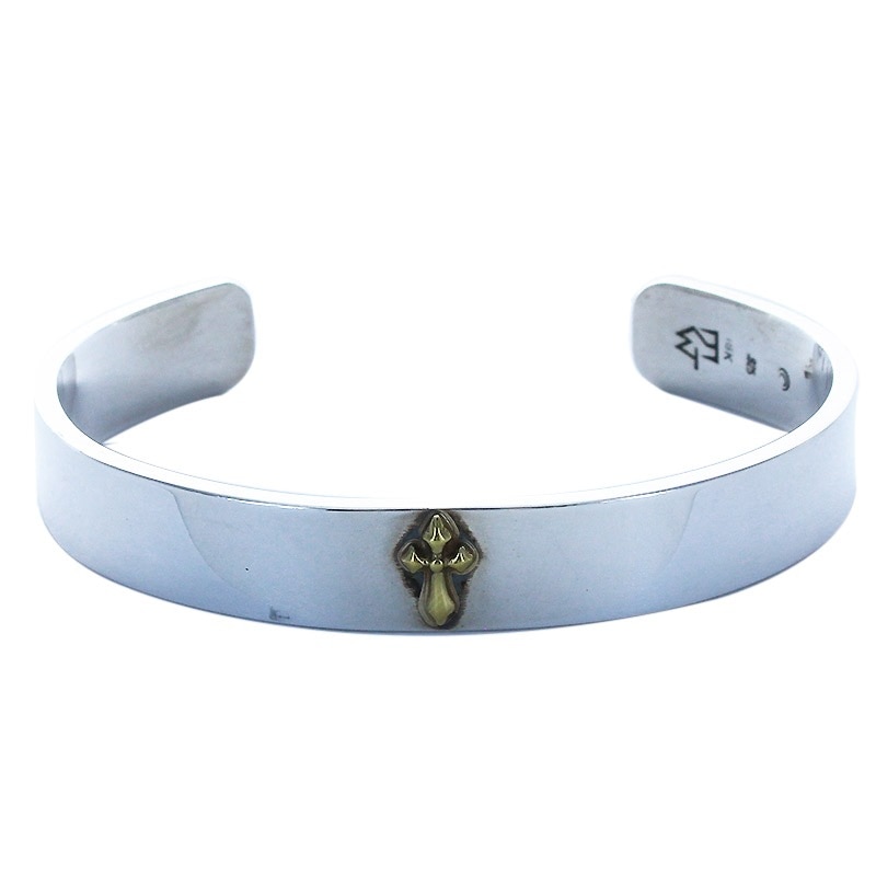 SILVER BANGLE 10mm WITH 1 18K YELLOW GOLD SMALL DOUBLE CROSS