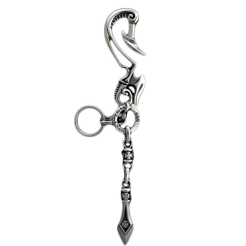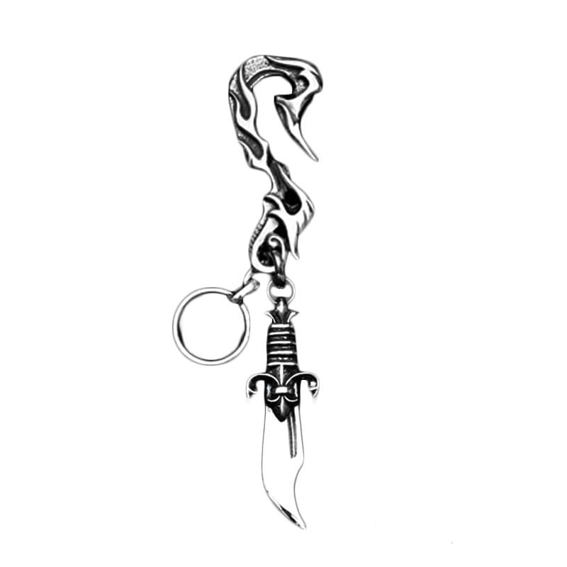 DRAGON HOOK WITH CROSS SKULL LINK AND DAGGER KEY CHAIN