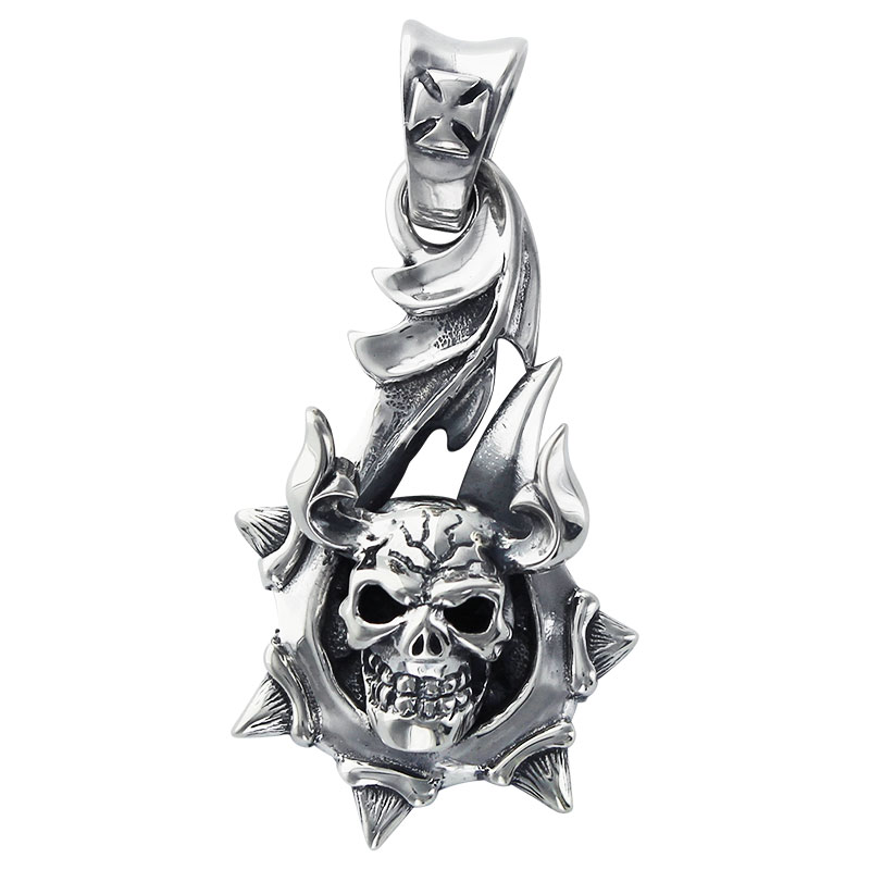 DRAGON TAIL HOOK WITH SKULL IN CENTER PENDANT