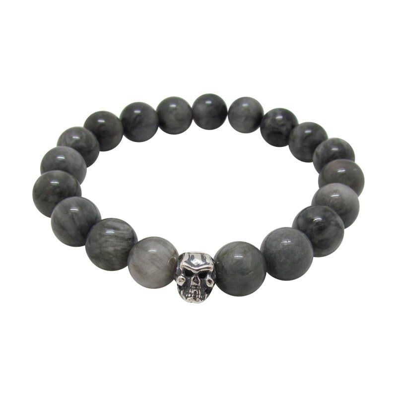 STONE WITH LIL’G SKULL BEAD BRACELET (10mm EAGLE EYE)