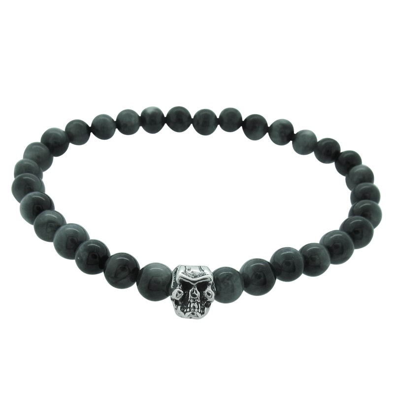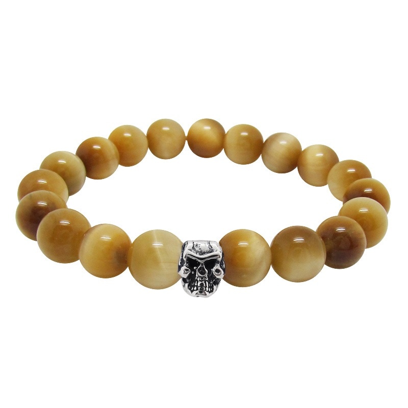 STONE WITH LIL’G SKULL BEAD BRACELET (6mm EAGLE EYE)