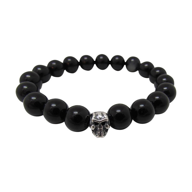 STONE WITH LIL’G SKULL BEAD BRACELET (10mm ONYX)