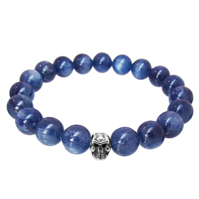 STONE WITH LIL’G SKULL BEAD BRACELET (10mm KYANITE)