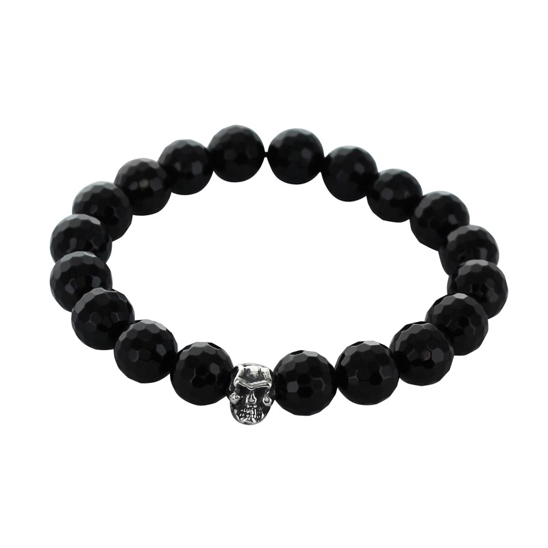 STONE WITH LIL’G SKULL BEAD BRACELET (10mm CUT ONYX)