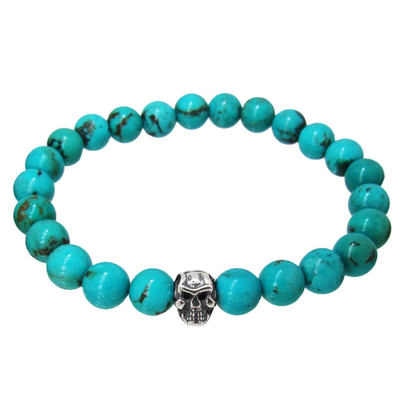 STONE WITH LIL’G SKULL BEAD BRACELET (8mm TURQUOISE)
