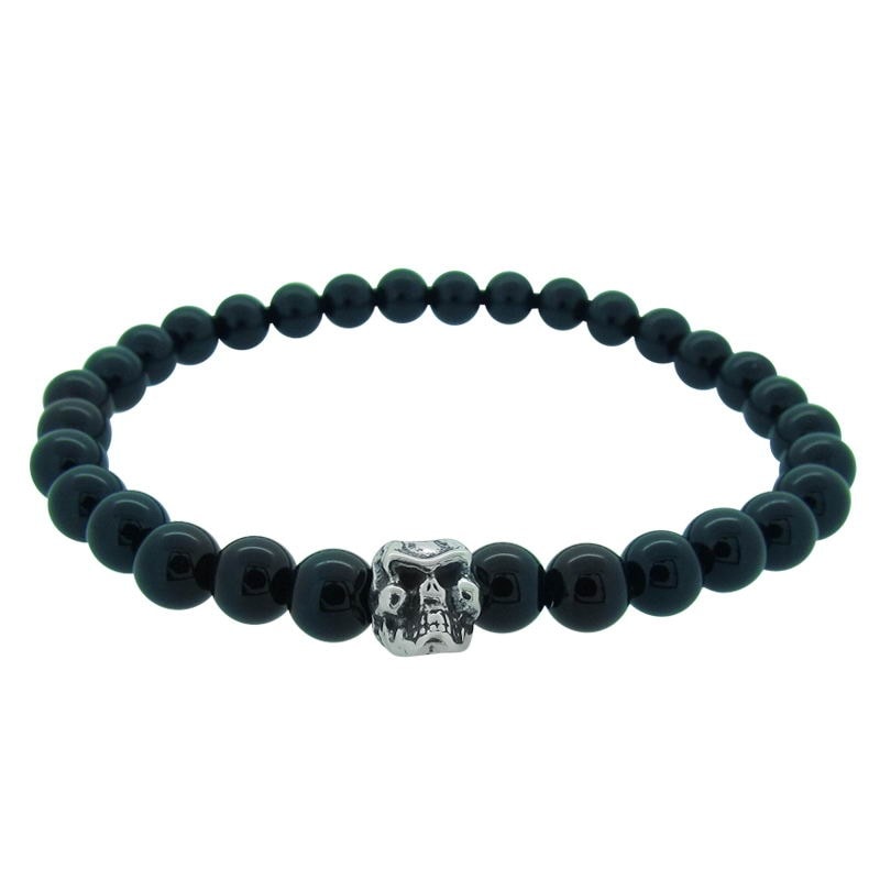 STONE WITH LIL’G SKULL BEAD BRACELET (6mm ONYX)