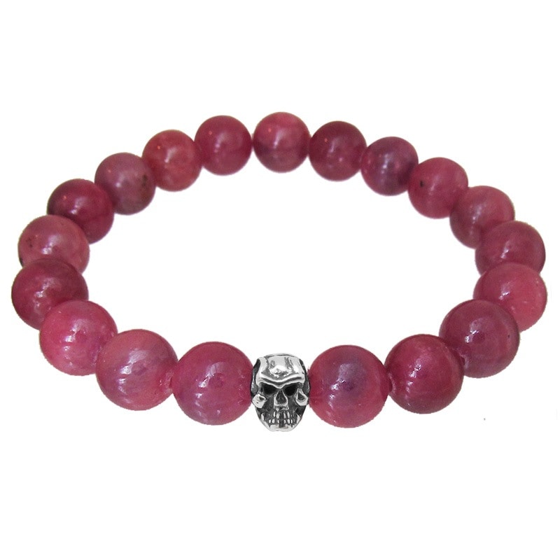 STONE WITH LIL’G SKULL BEAD BRACELET (10mm RUBY)