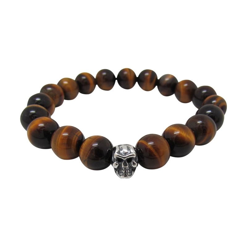 STONE WITH LIL’G SKULL BEAD BRACELET (10mm MIX TIGER EYE)