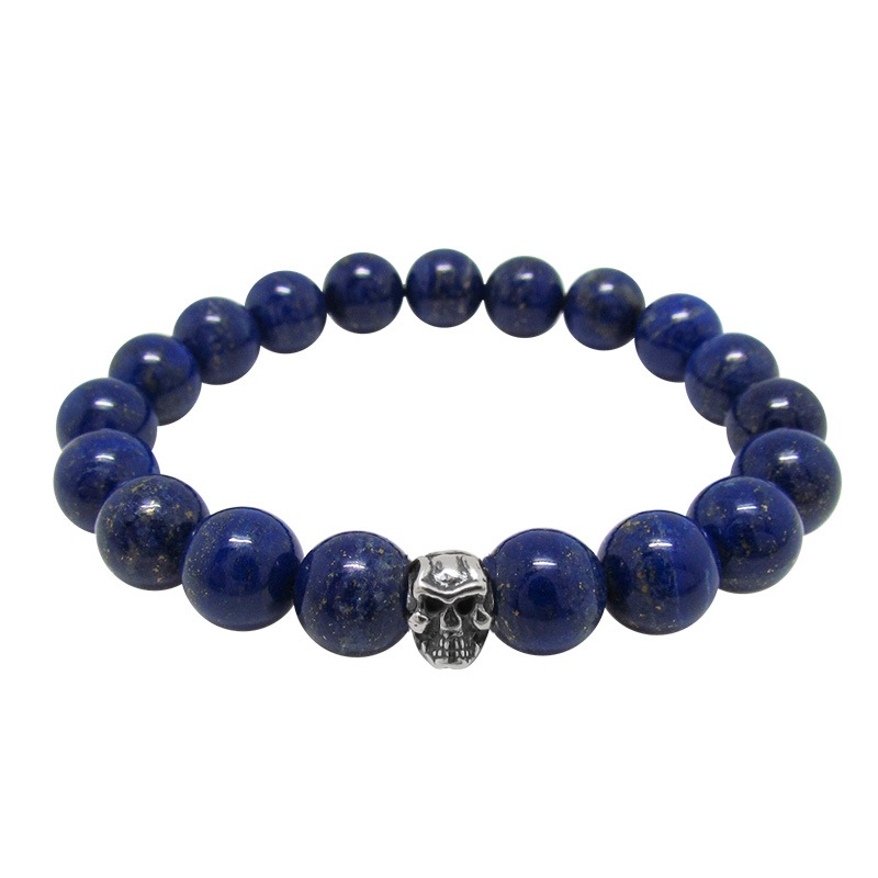 STONE WITH LIL’G SKULL BEAD BRACELET (10mm LAPIS LAZULI)