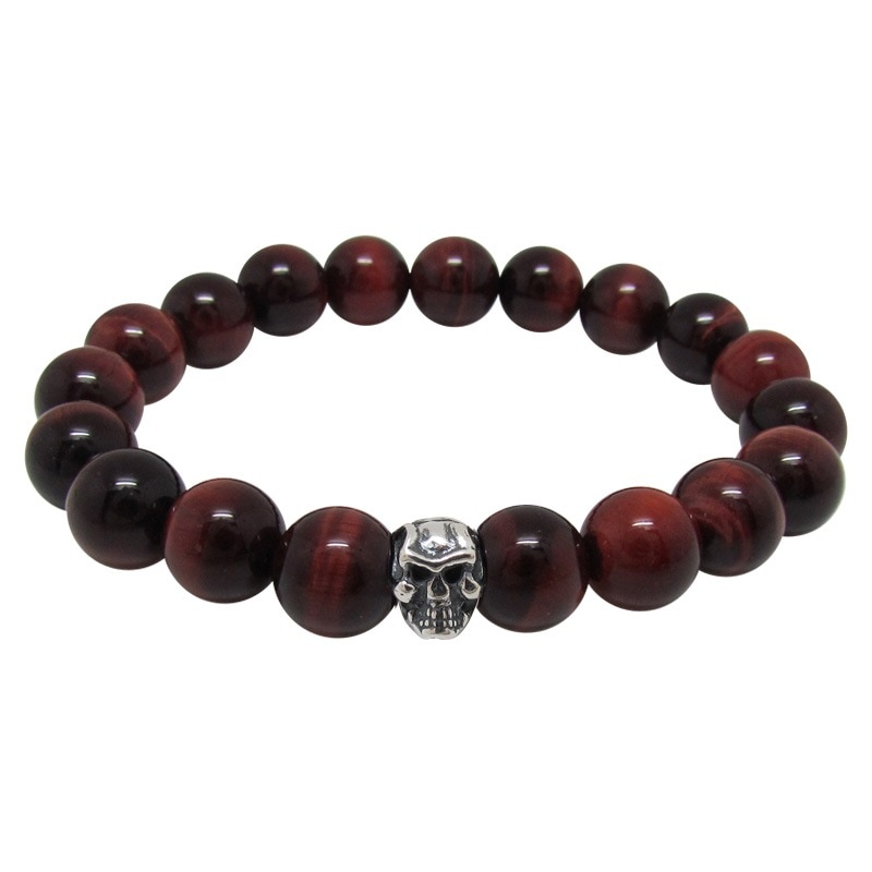 STONE WITH LIL’G SKULL BEAD BRACELET (10mm RED TIGER EYE)
