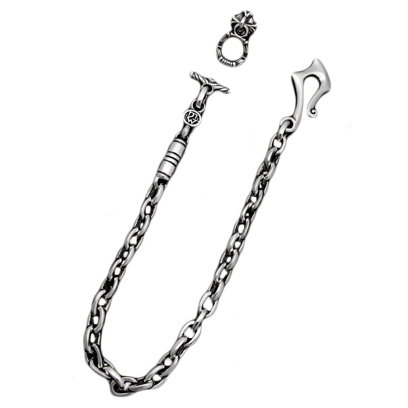 HOOK WITH D.C RING. LION & SMOOTH LINKS WALLET CHAIN WITH OLD T-BAR