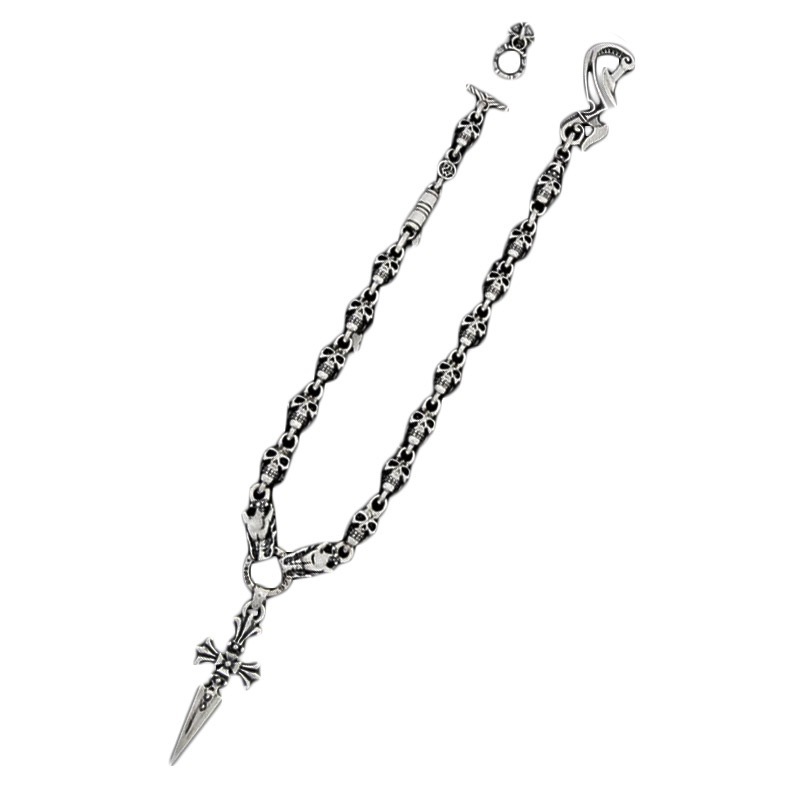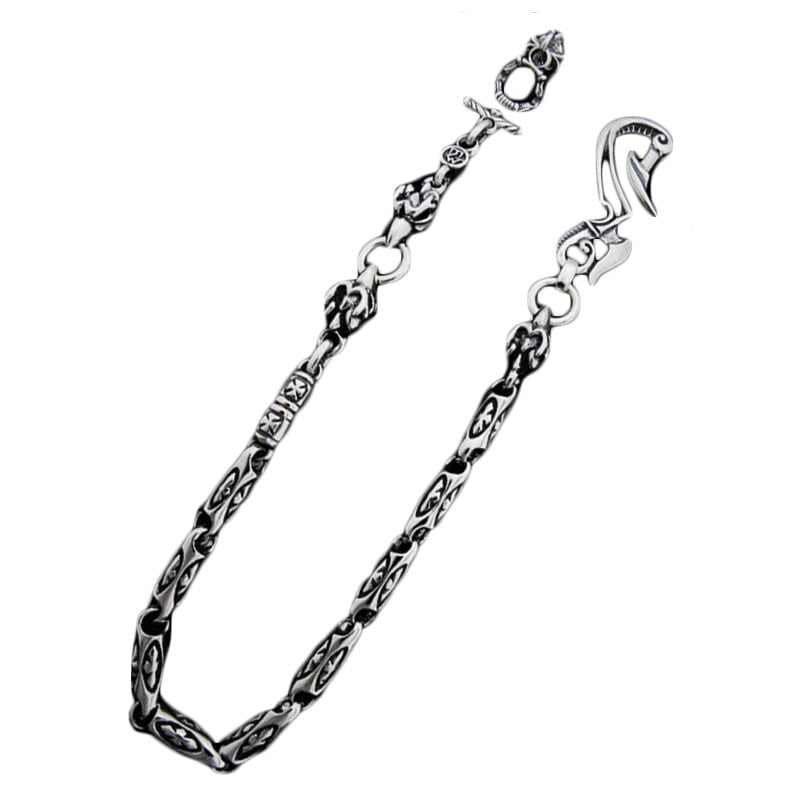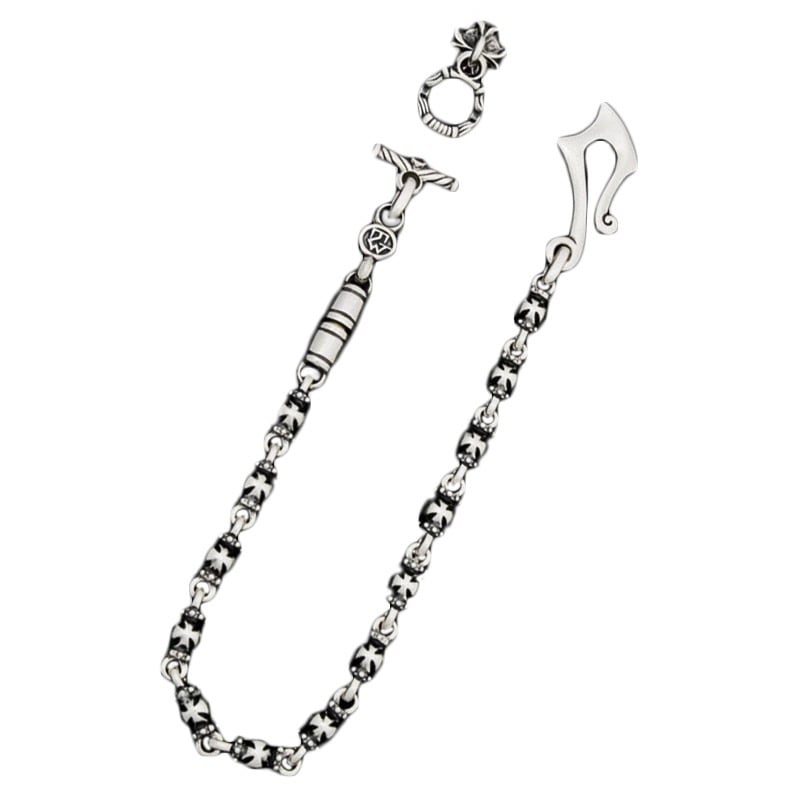 THUNDER HOOK WITH SKULL LINKS AND CROSS DAGGER WALLET CHAIN WITH T-BAR CZ