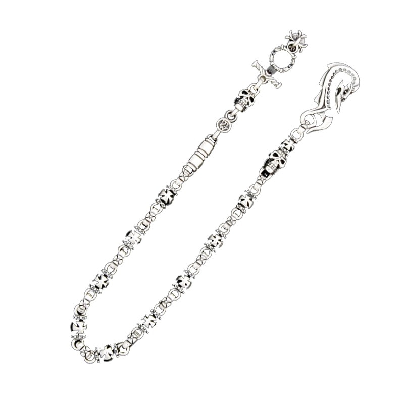 THUNDER HOOK - CROSS SKULL LINK WITH SMOOTH & SKULL LINKS WALLET CHAIN WITH T-BAR CZ