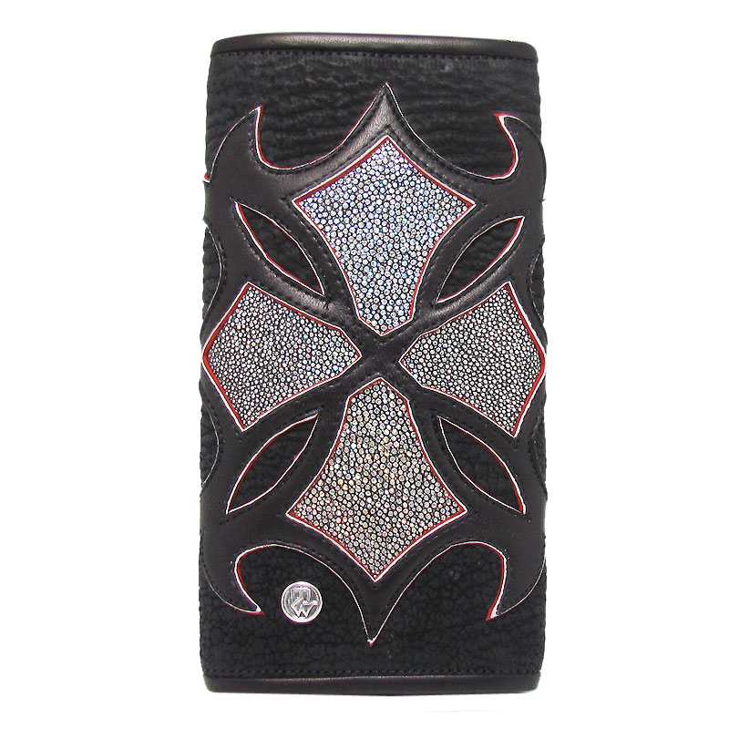 EXTRA LARGE 3-FOLD WALLET - SHARK TRIBAL CROSS ART SILVER STINGRAY INLAY AND RED WHITE TRIMについてつぶやく