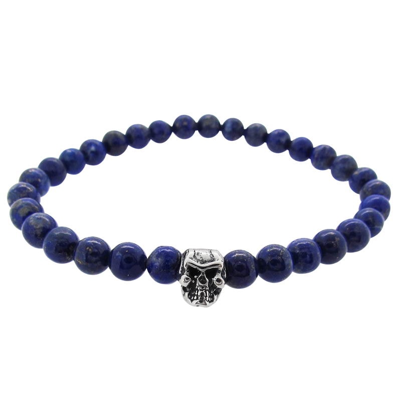 STONE WITH LIL’G SKULL BEAD BRACELET (6mm LAPIS LAZULI)