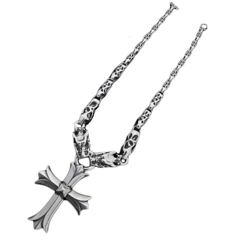 LARGE SACRED CROSS WITH 2 GARGOYLES WITH MEAT LINKS NECKLACE WITH T-BAR CZ