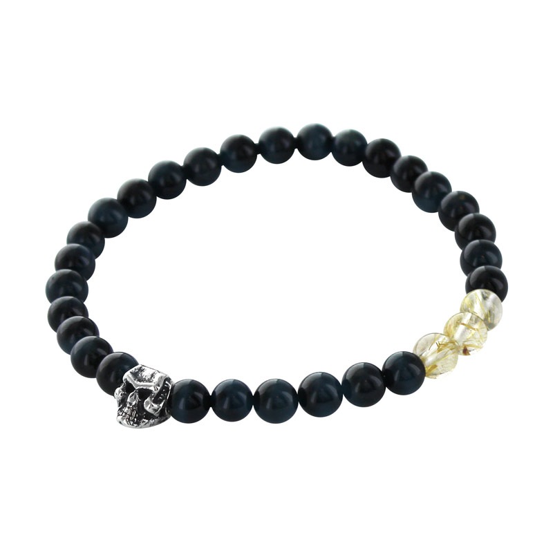 【オンラインショップ限定】STONE WITH LIL’G SKULL BEAD BRACELET (6mm BLUE TIGER EYE / GOLDEN RUTILE QUARTZ)