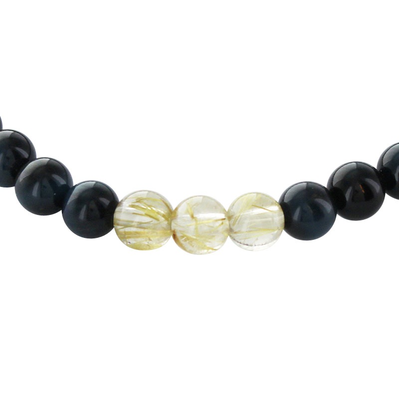 シルバー925、ブルータイガーアイ、ゴールデンルチルクォーツ、シリコンゴム