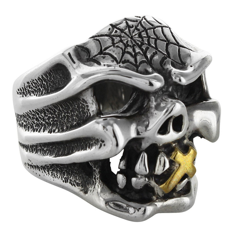 CHOMPS SKULL RING WITH BRASS CROSS TEETH AND SPIDER ENGRAVEについてつぶやく