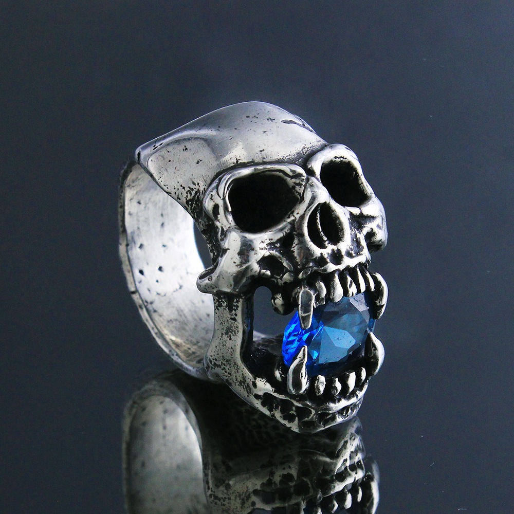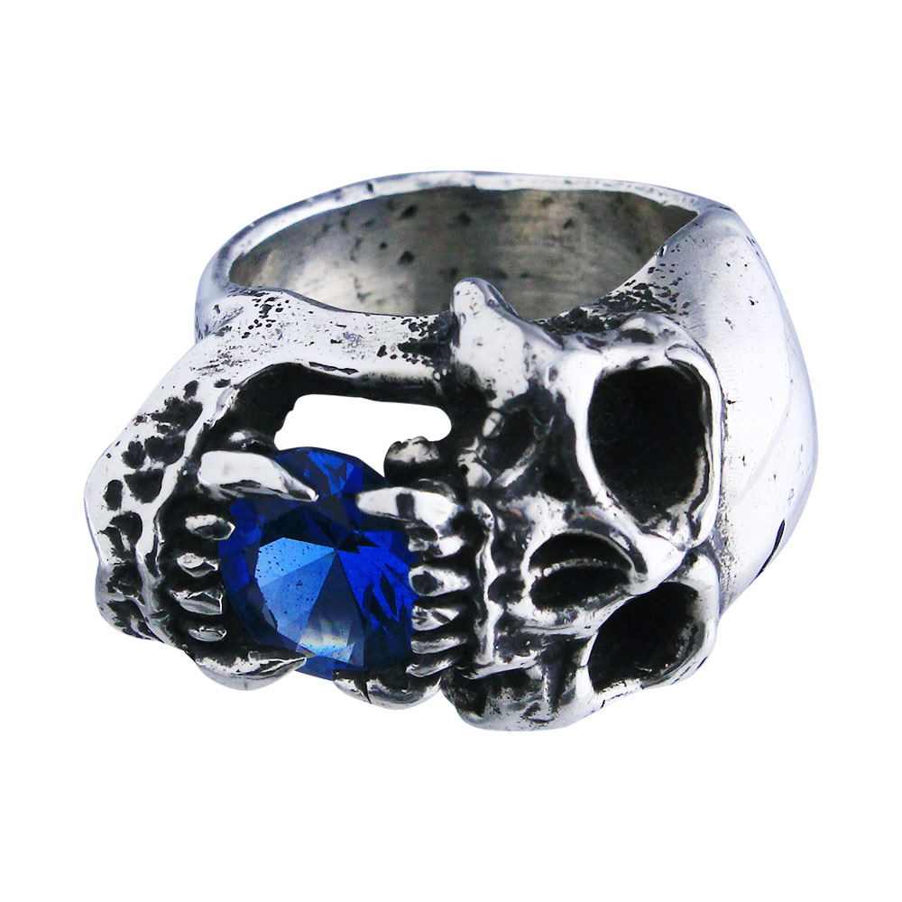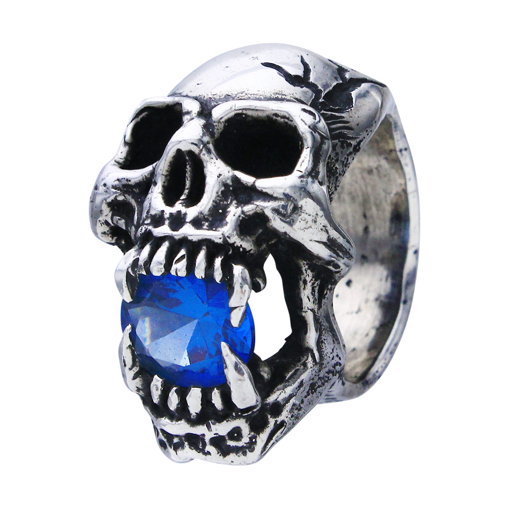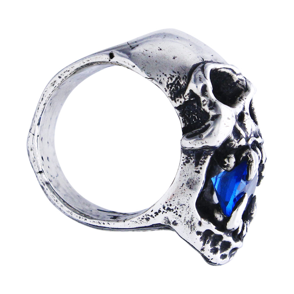 【本国オーダー商品/納期約4ヶ月前後】 SIDEWAYS SKULL RING WITH (BLUE ZIRCON)