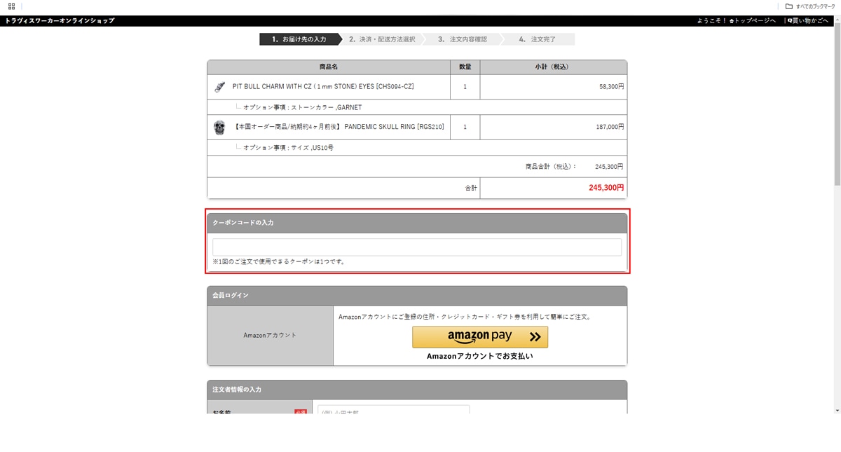 ※クーポンコードの入力忘れ後のご注文にはご対応いたしかねますので、ご注文の際はよくご確認ください。